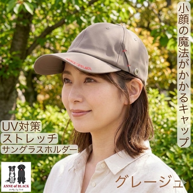小顔効果 UVカット 黒毛のアンのキャップ ストレッチ サングラスホルダー
