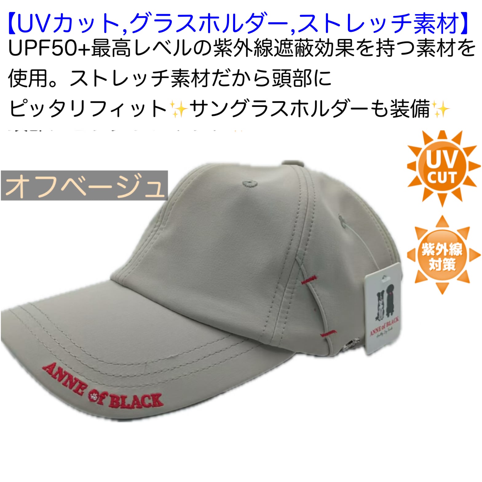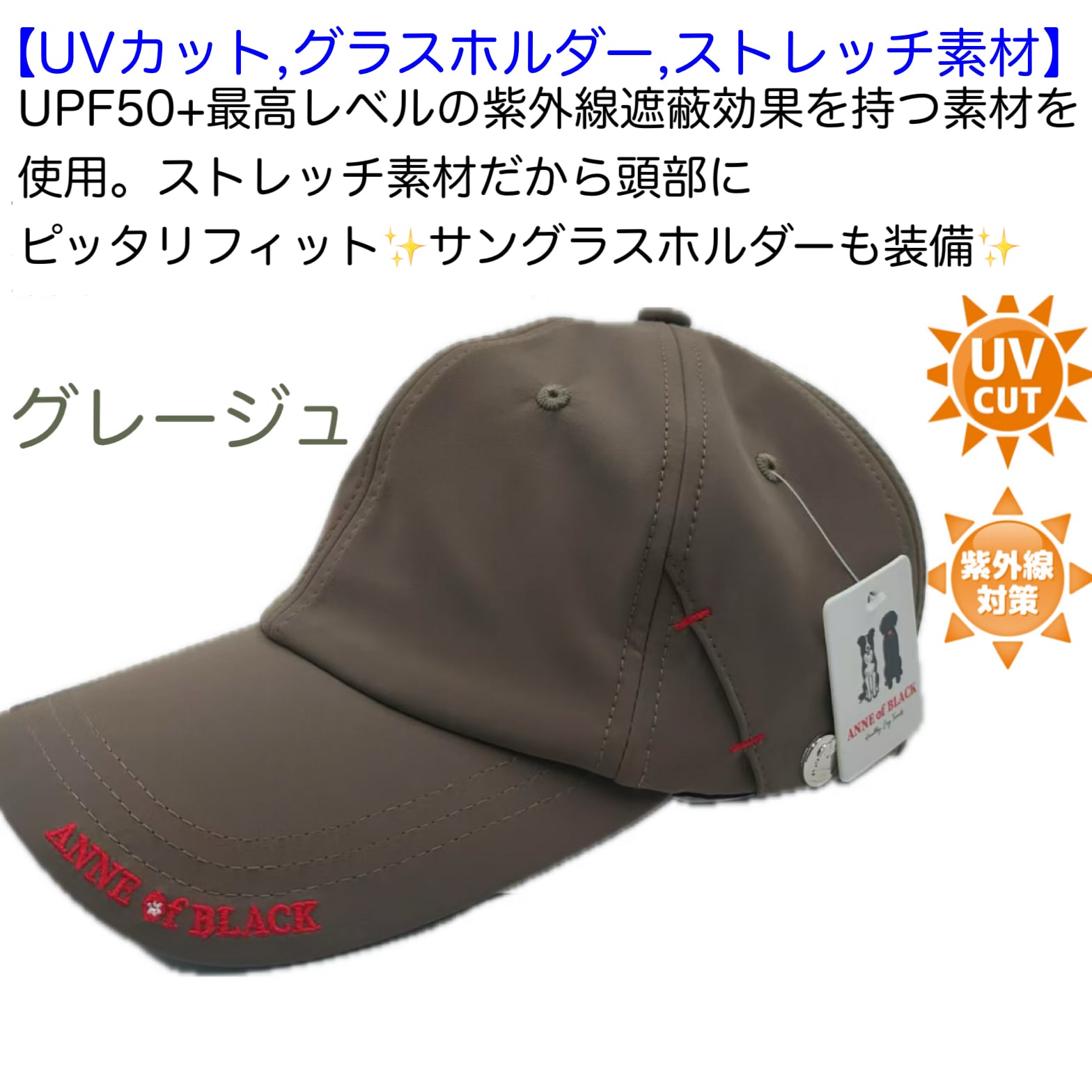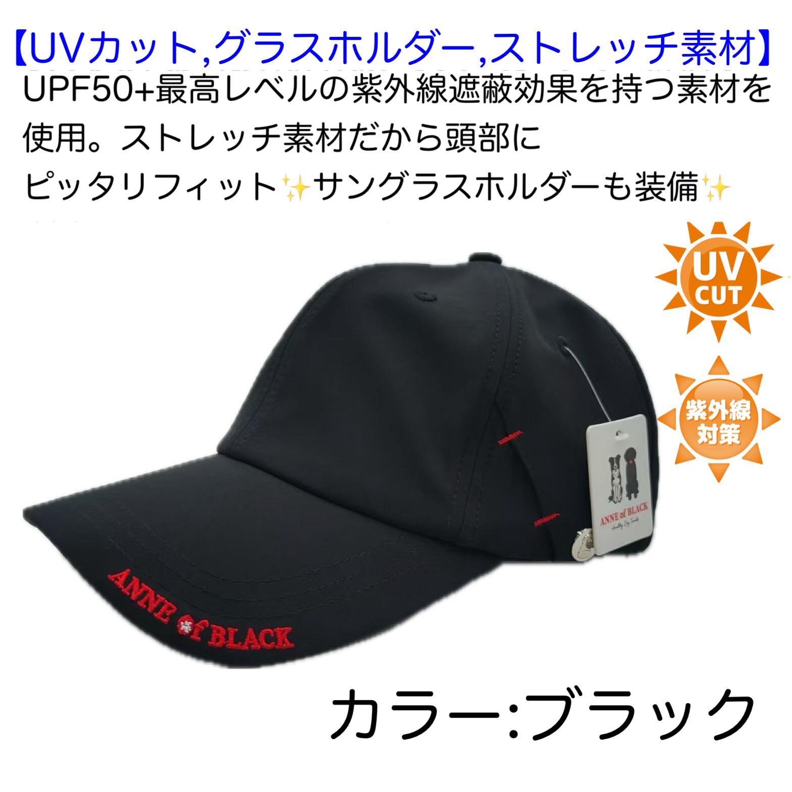 【紫外線カット素材】黒毛のアンのキャップ 98%以上UVカット ストレッチ サングラスホルダー