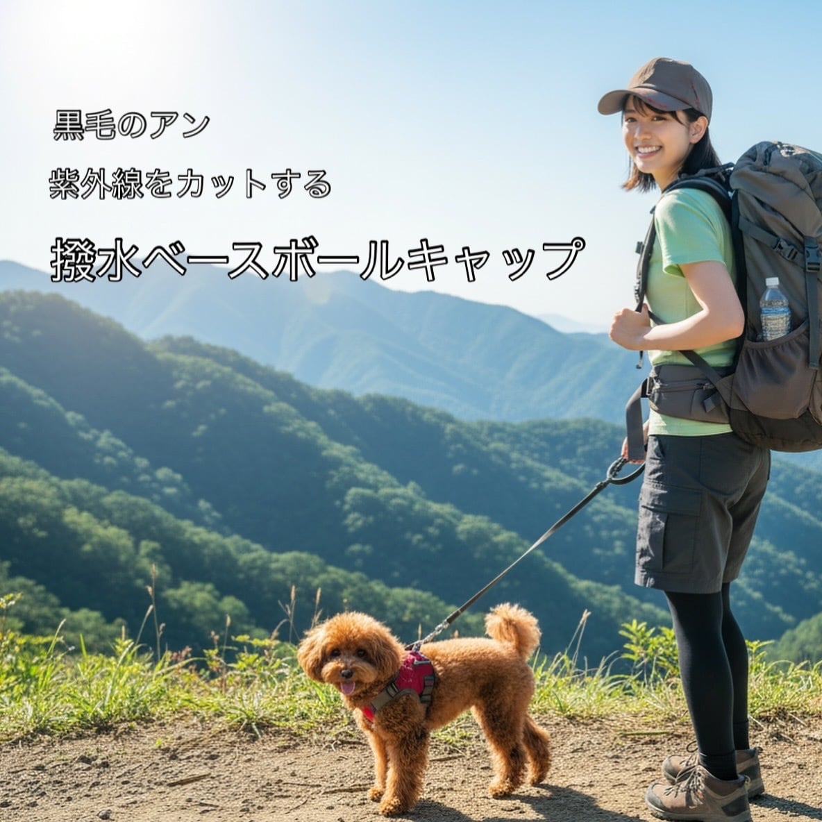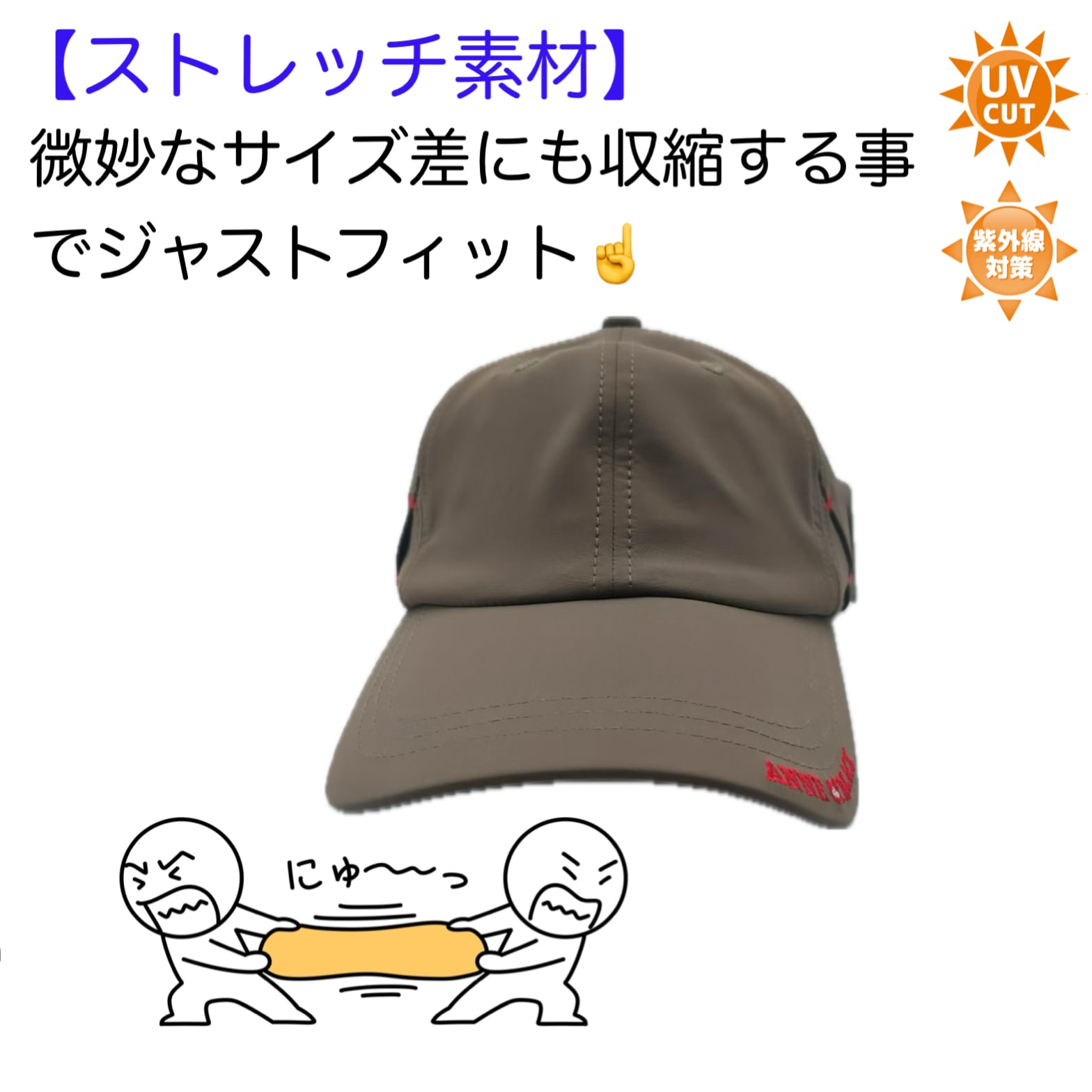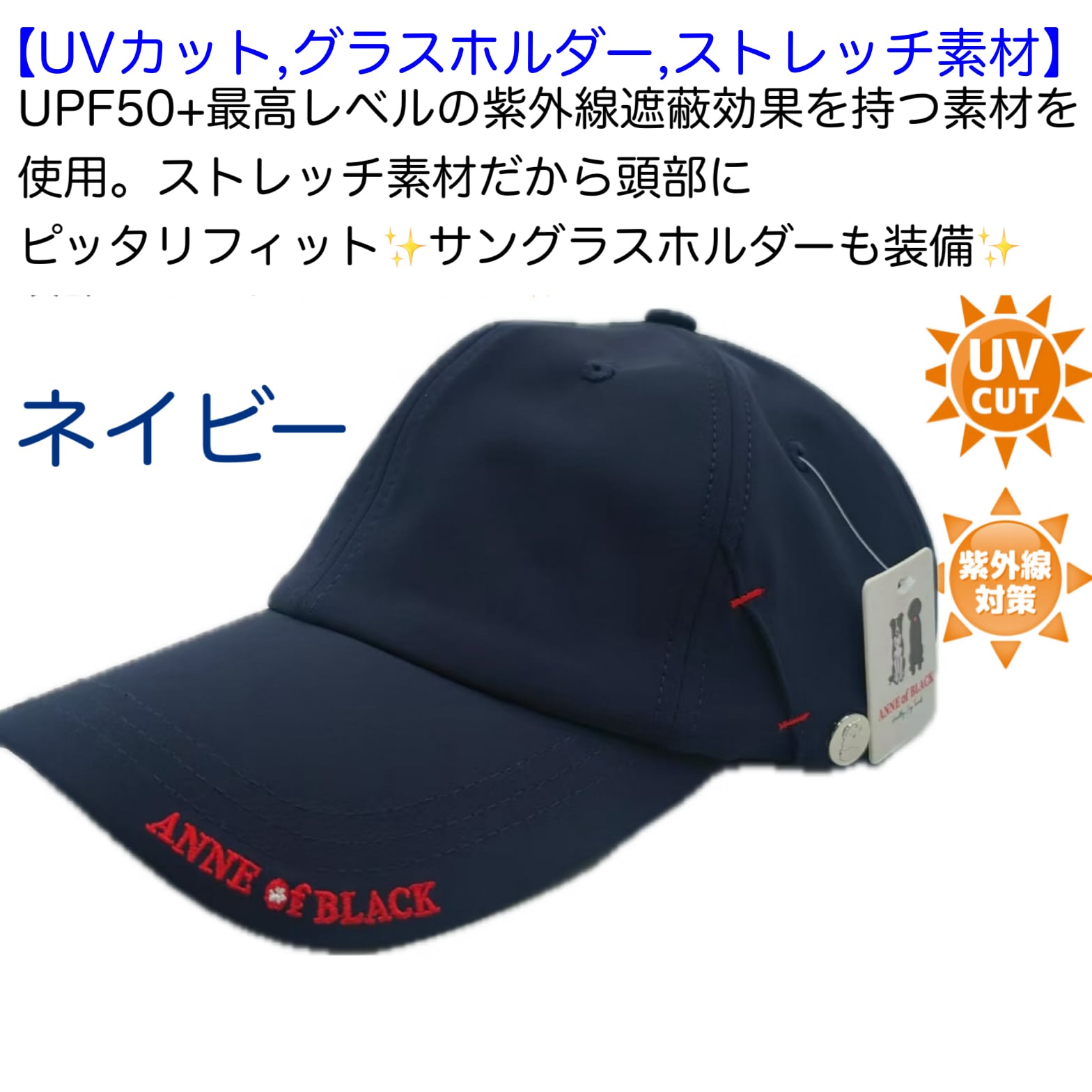 【紫外線カット素材】黒毛のアンのキャップ 98%以上UVカット ストレッチ サングラスホルダー