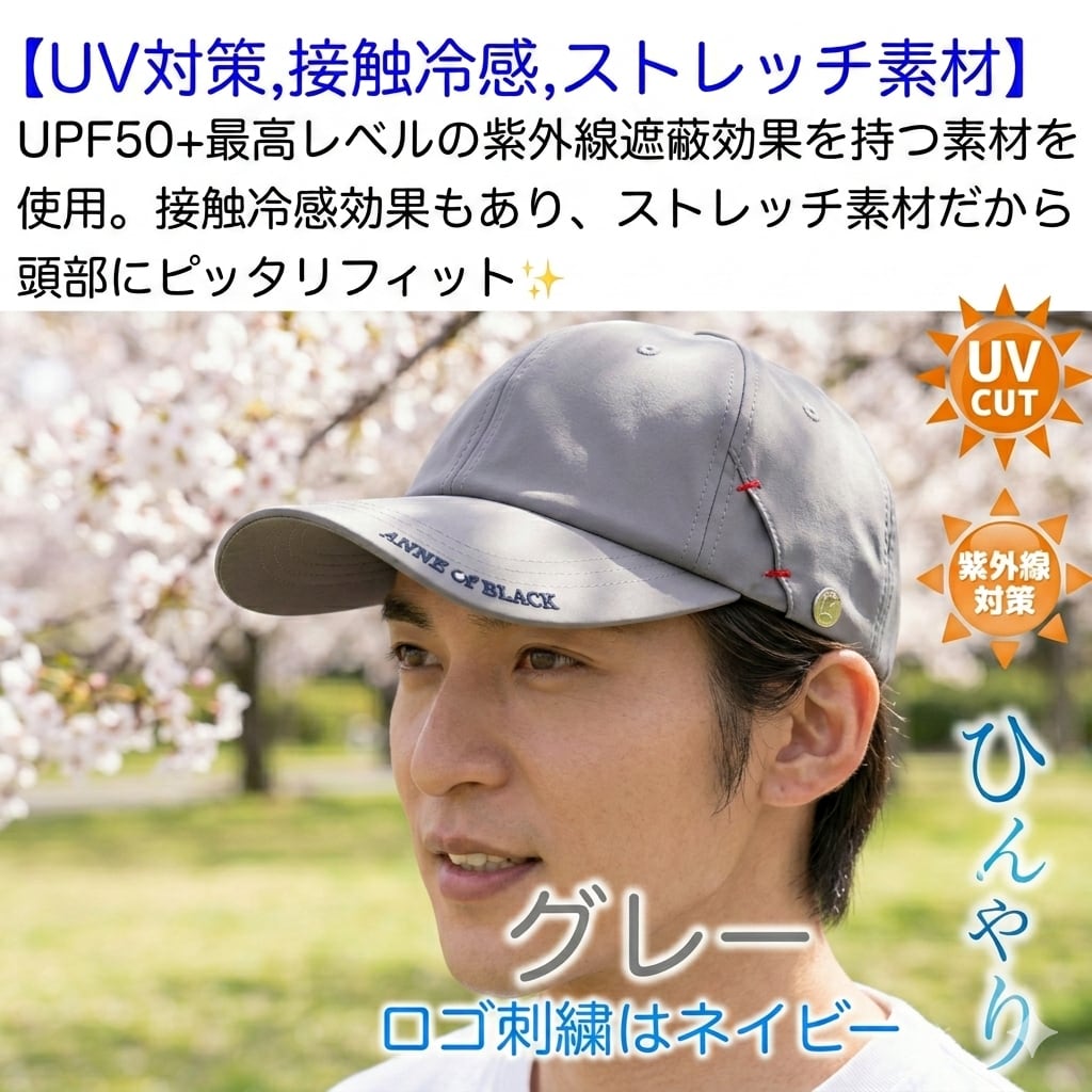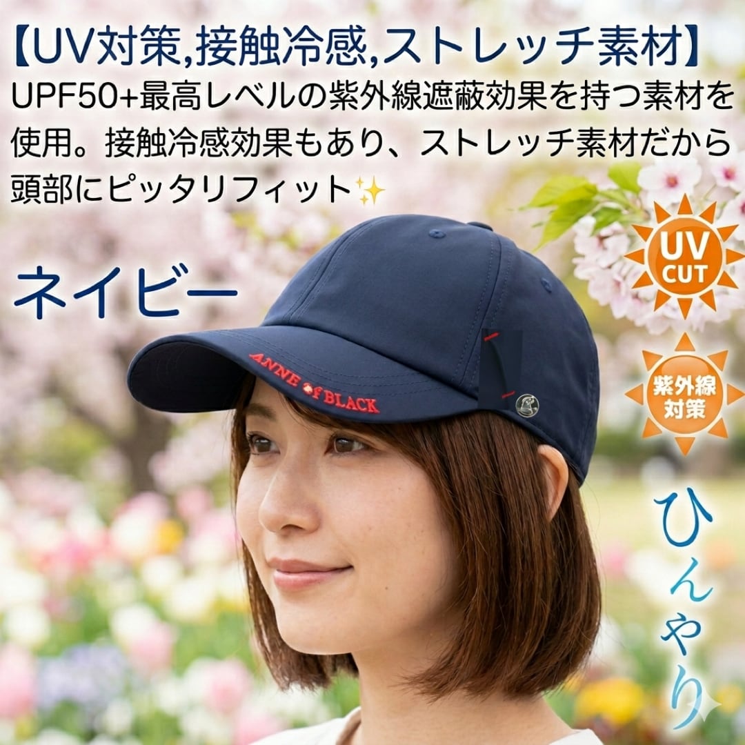 黒毛のアンのCAPはUPF50+。