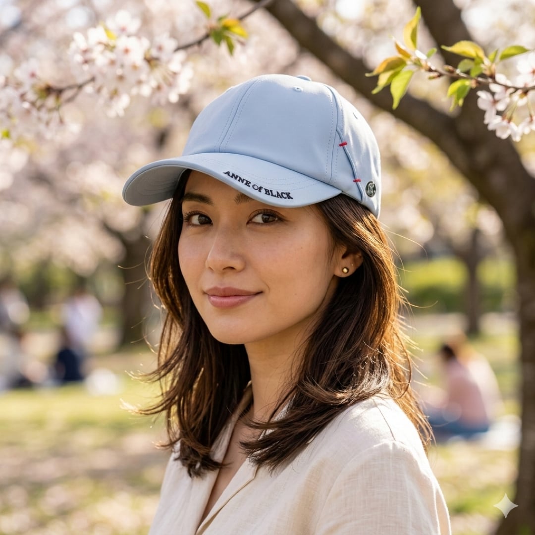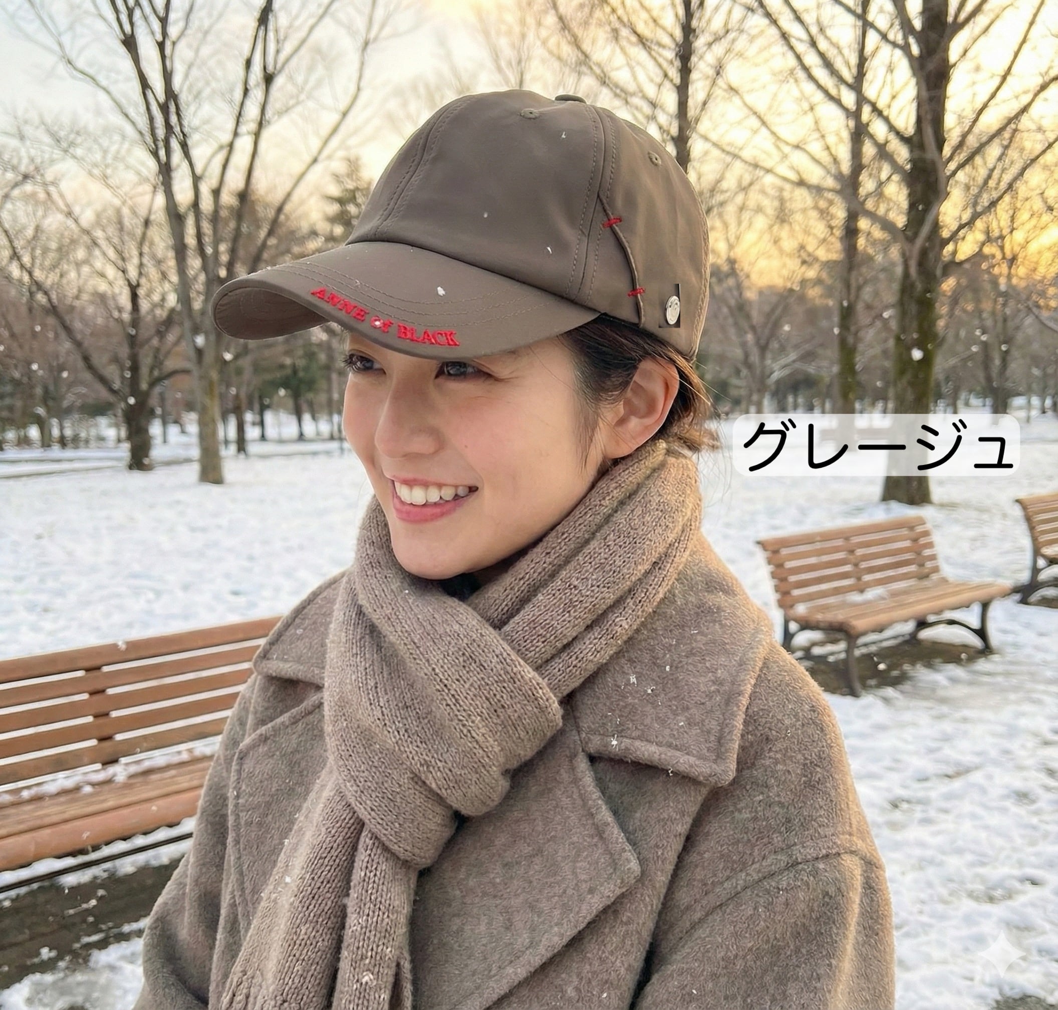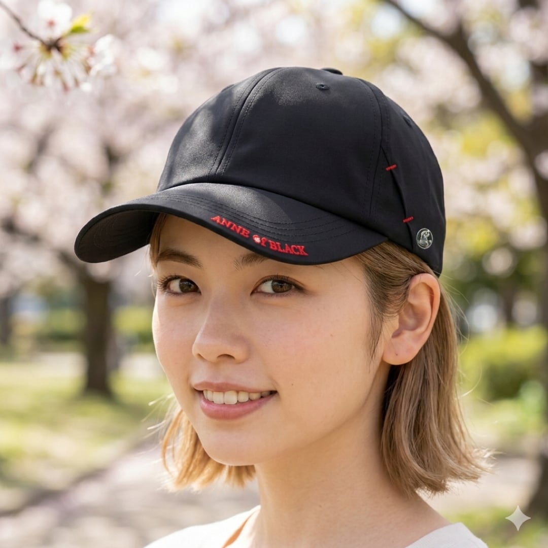 フロントつば部分には「ANNE of BLACK」の刺繍を施し、ワンポイントデザインに。