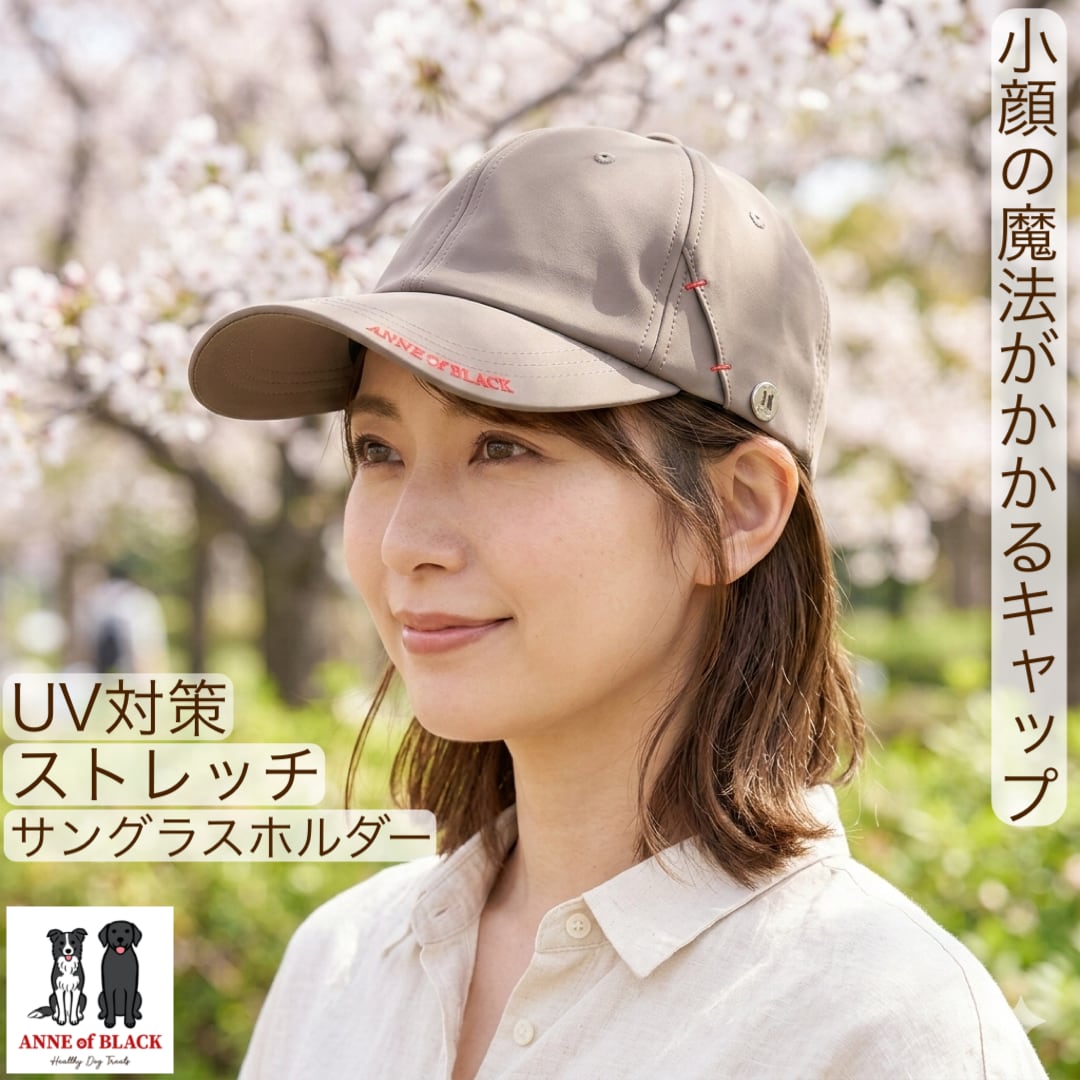 小顔効果 UVカット 黒毛のアンのキャップ ストレッチ サングラスホルダー
