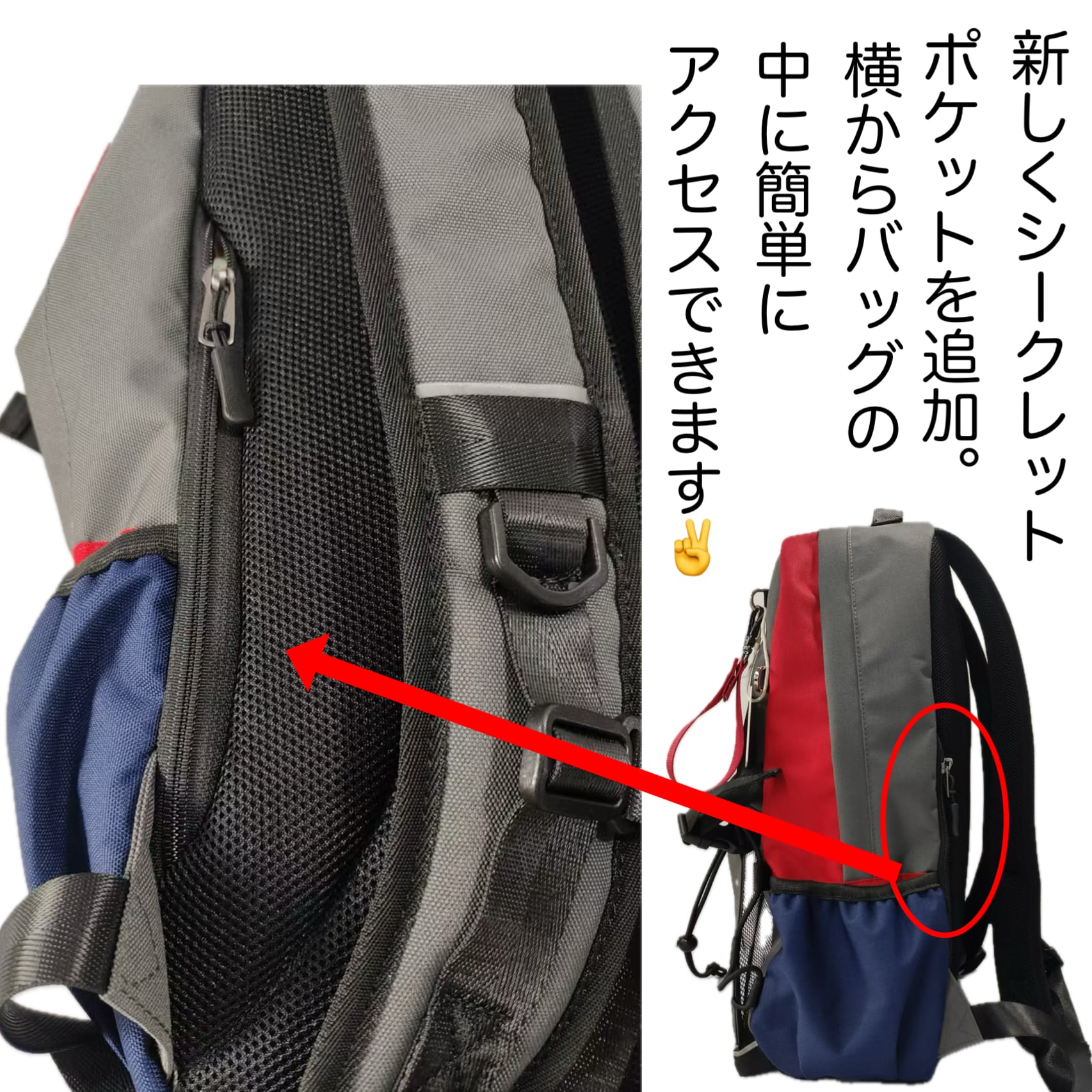 本体正面の大型メッシュ外ポケットと両サイドのペットボトルが入るポケットが付いているリュックはこれだけ。